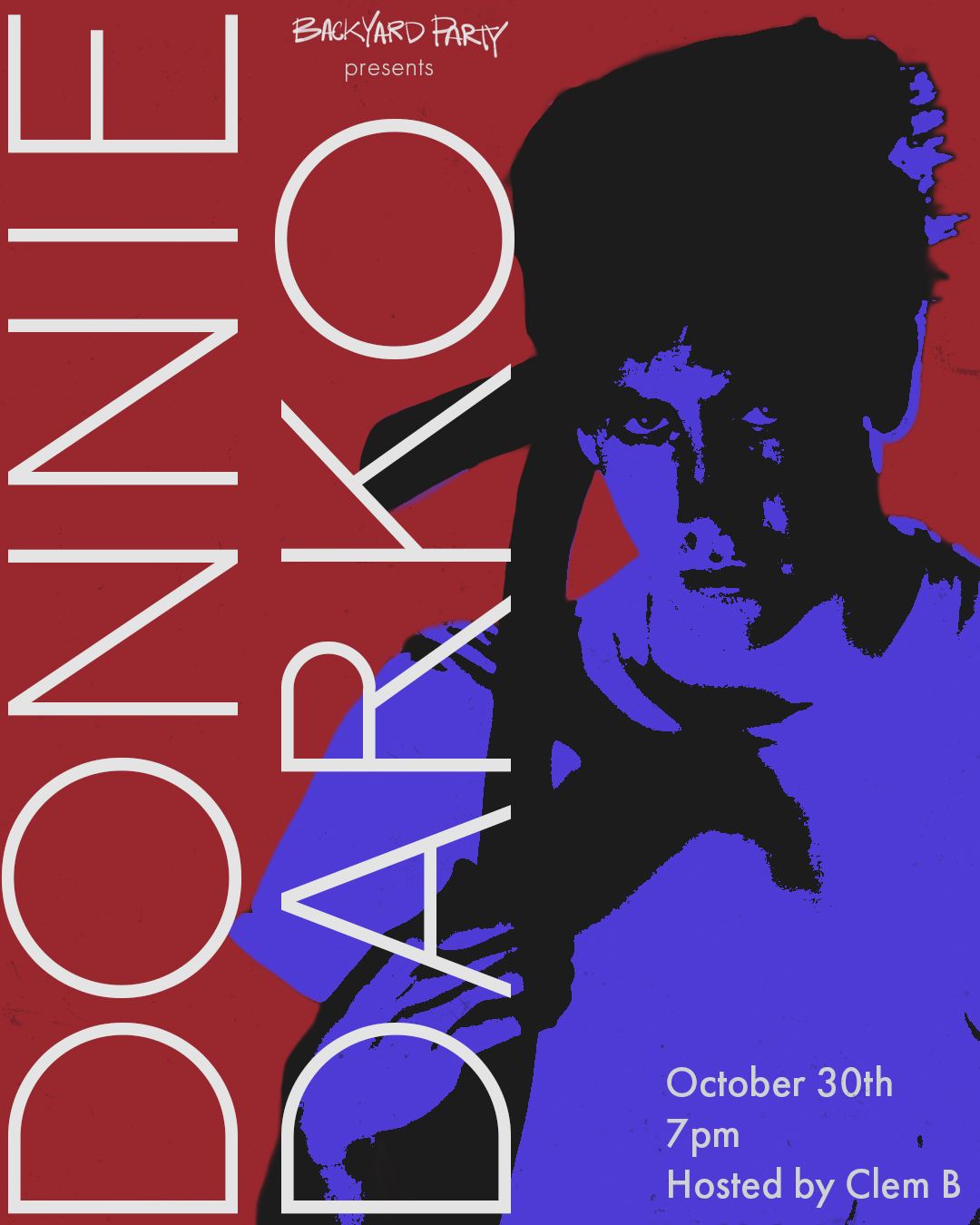 Donnie Darko projected on the big wall with your host, Clem B. Popcorn, snacks, costumes, dance party, etc. $2
